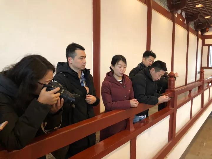 媒体记者们在高贵与典雅的唐风设计之中