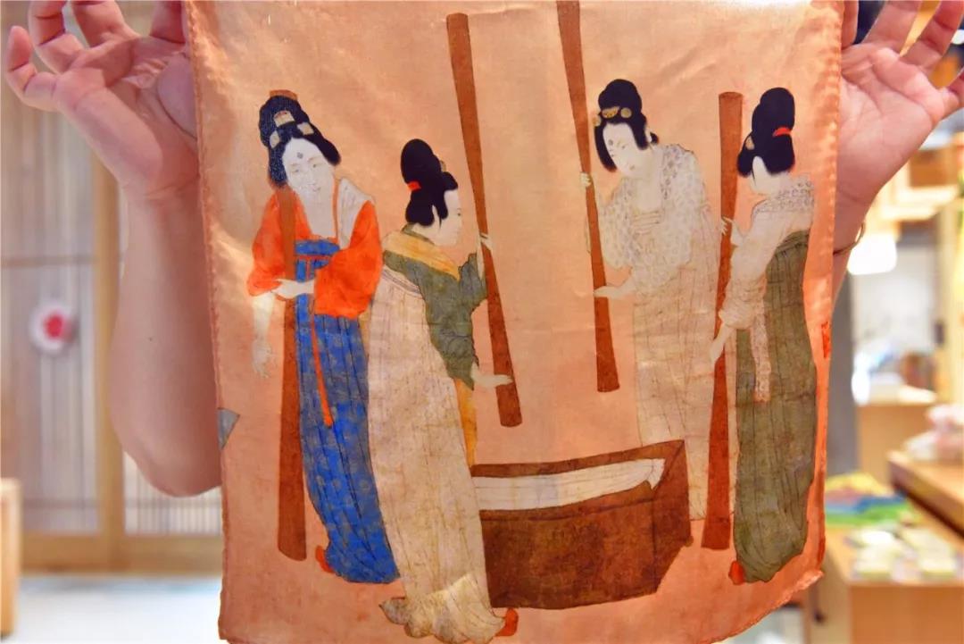 唐代仕女画以其端庄华丽,雍容典雅而著称。此系列商品根据唐代著名仕女画作品《簪花仕女图》、《捣练图》和《宫乐图》衍生出了一系列纺织用品和纸制品,在图案上体现了唐代的审美情趣以及绘画艺术所取得的杰出成就,并且可以从产品上了解到唐代女性的服饰妆容、生活方式和生活场景。
