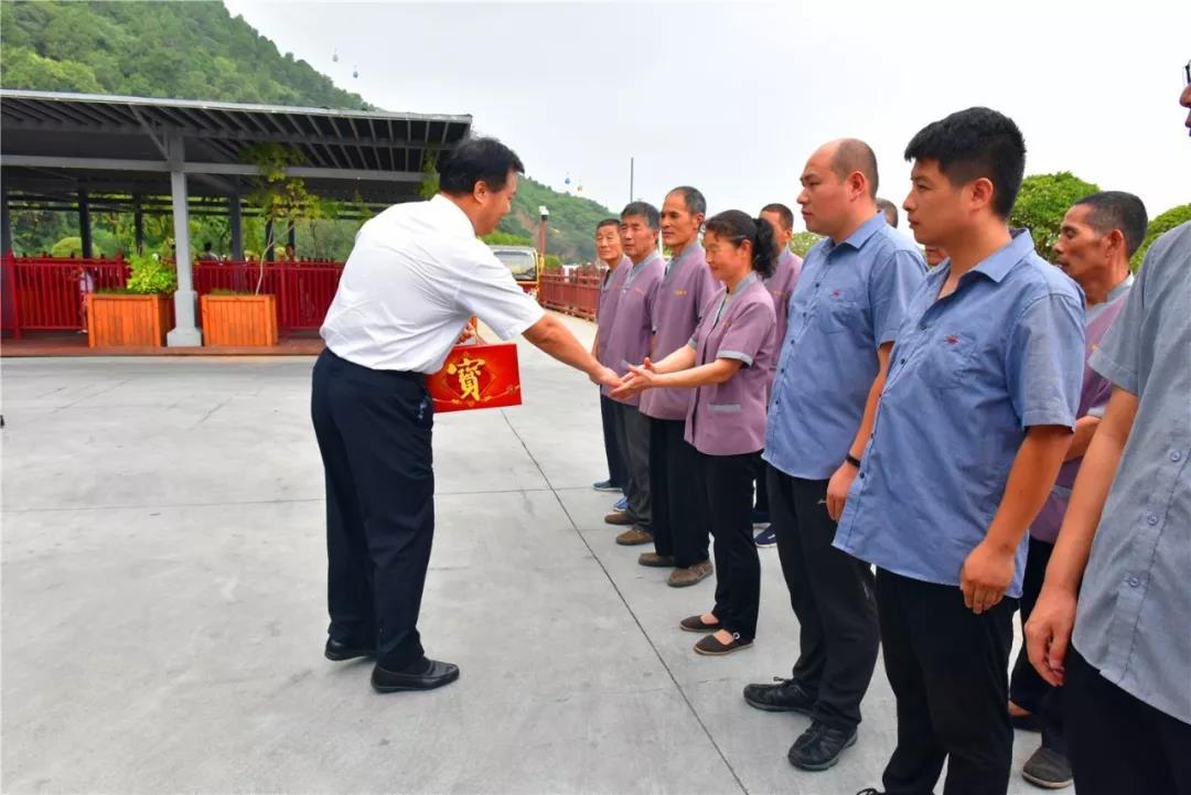 在高温酷暑之际,各位领导带着关怀和问候,为华清宫景区员工送来了防暑降温品。陕西华清宫党委书记、执行董事靳勇,党委副书记、总经理姚新垣,党委副书记、常务副总经理王瑞等领导陪同并一同慰问职工。