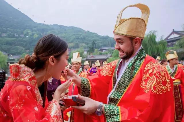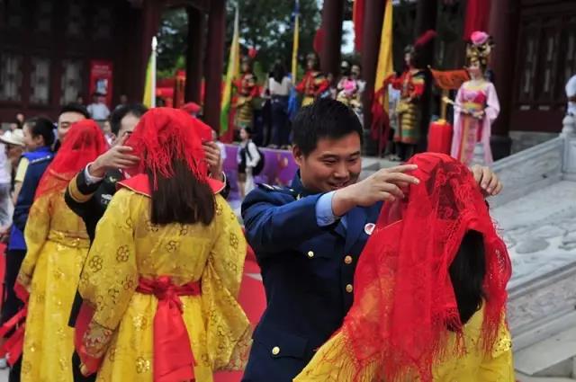 十年来的每一个七夕佳节,在华清宫的九龙塘畔,一对对有情人身着华丽唐朝婚服,跨马鞍、挑喜帕、结发礼、合衾酒、敬天祈福,他们不分年龄、来自不同国家、不同肤色,但他们却是统一衣袂飘飘,举手投足间尽是古人风范!