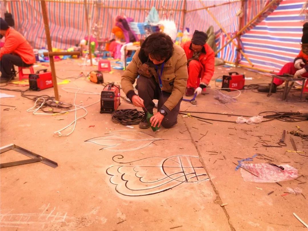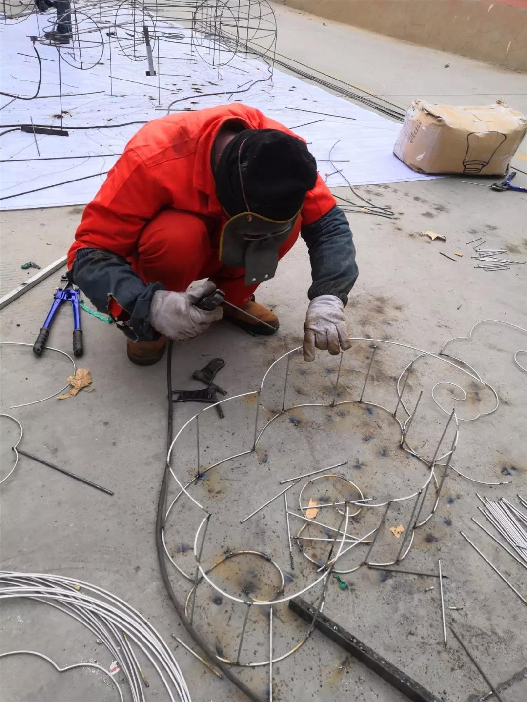 一个完整的花灯需要进行放样、骨架焊接