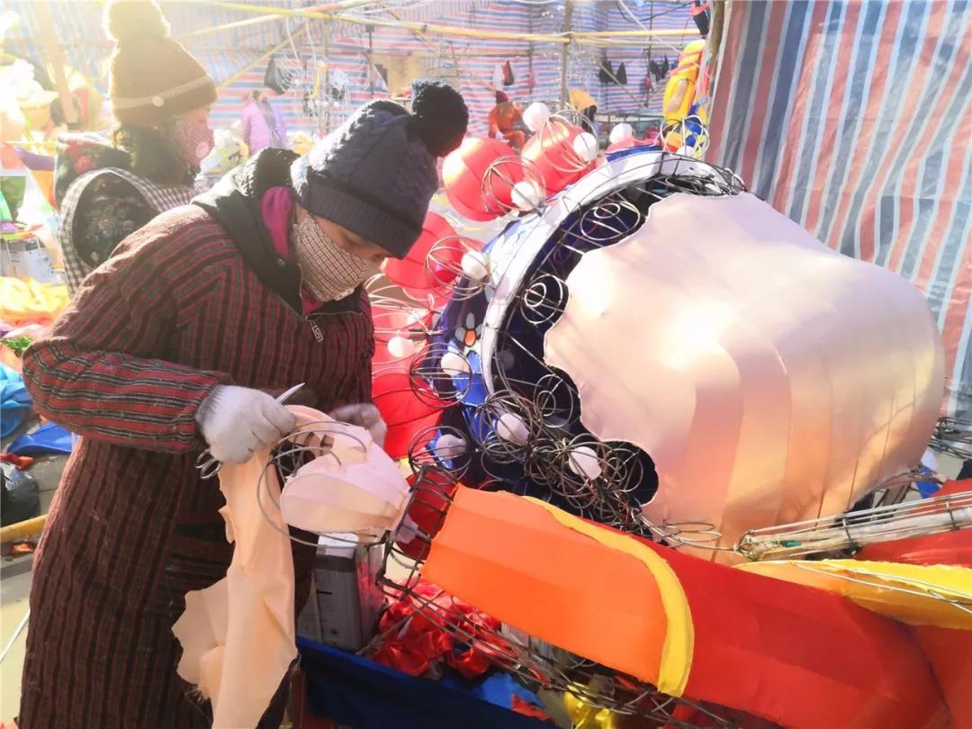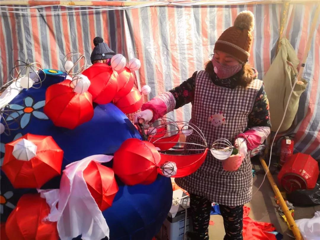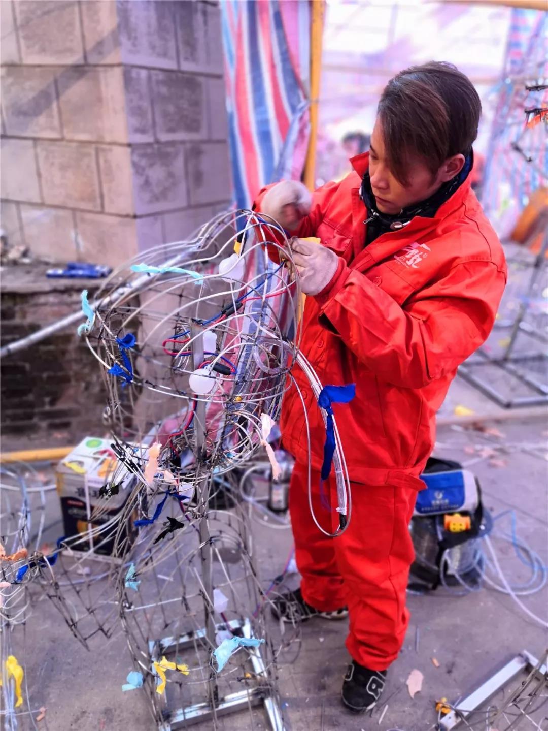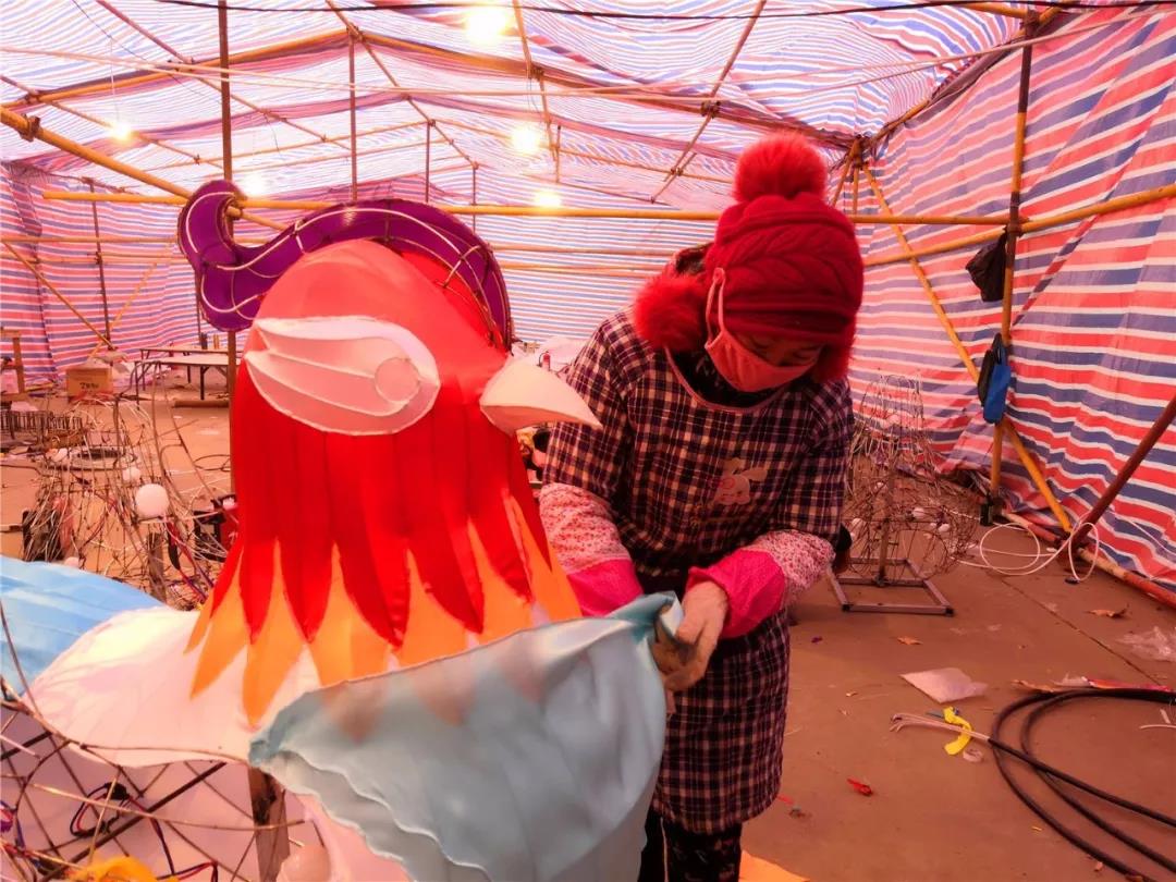 此时,景区灯会制作现场